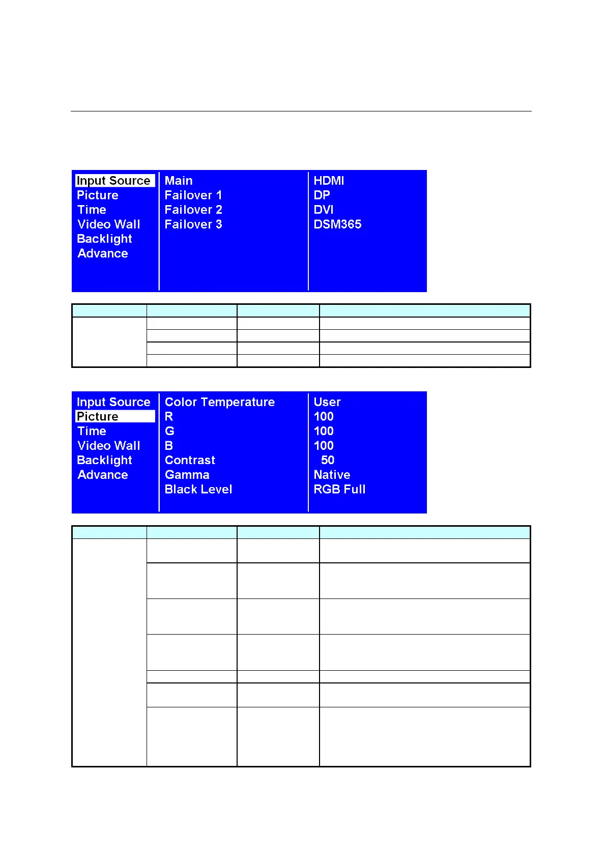 Press the MENU button on either the rear panel control or remote control to show the OSD. Use the