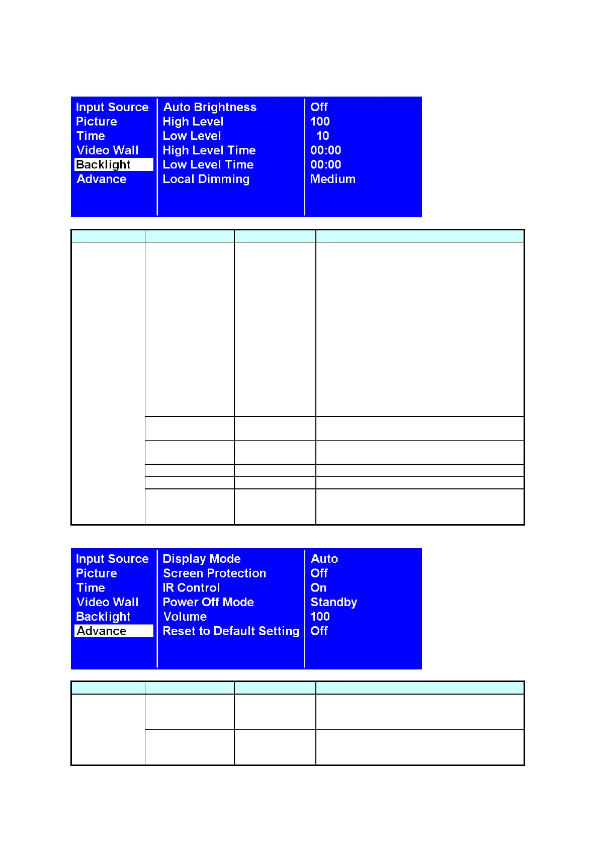 LEVEL brightness value set. When the