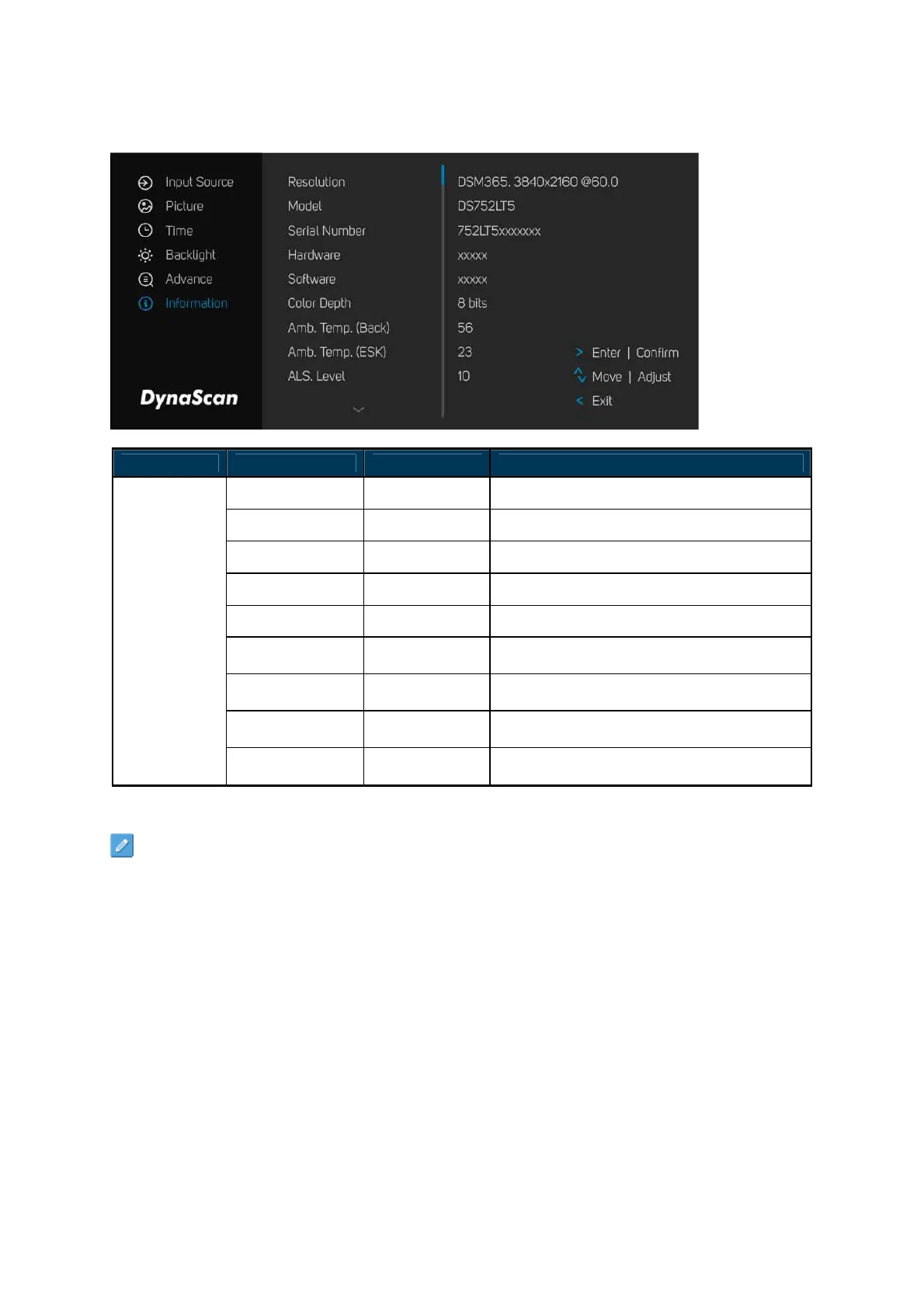 Serial Number The display’s serial number.