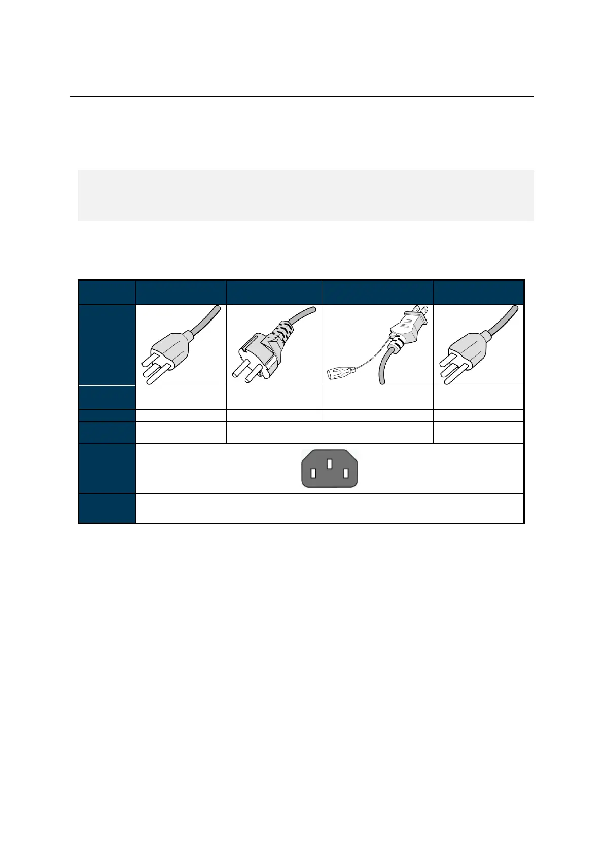 Attention: Please use the following table to check whether the included power cord is suitable for