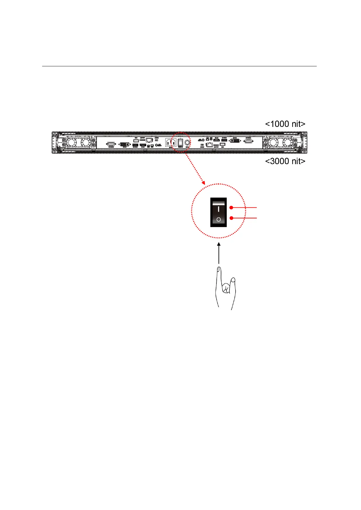 To turn on/off the display. Press the power switch on as shown in the diagram below.