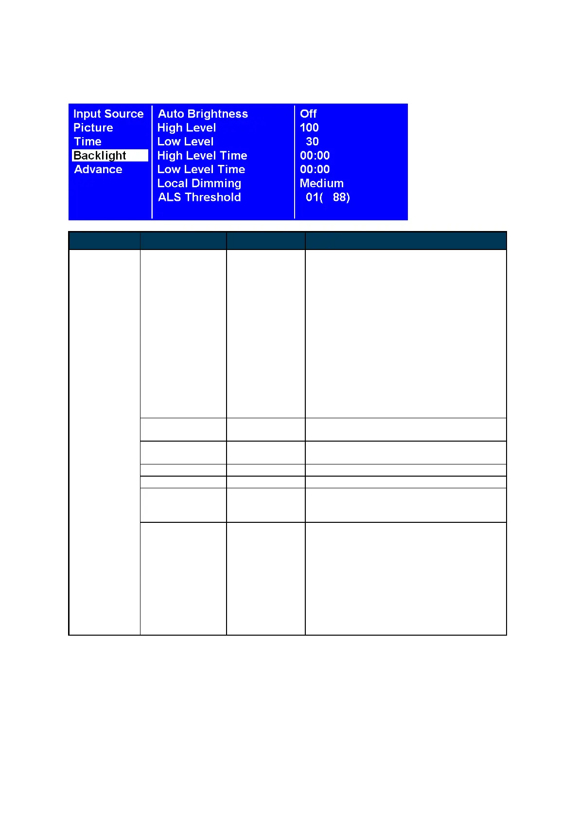 LEVEL brightness value.
