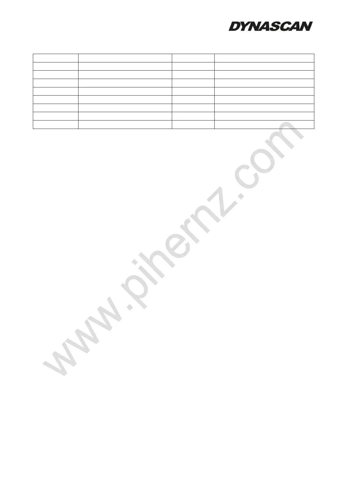 Tableau des canaux et des fréquences: