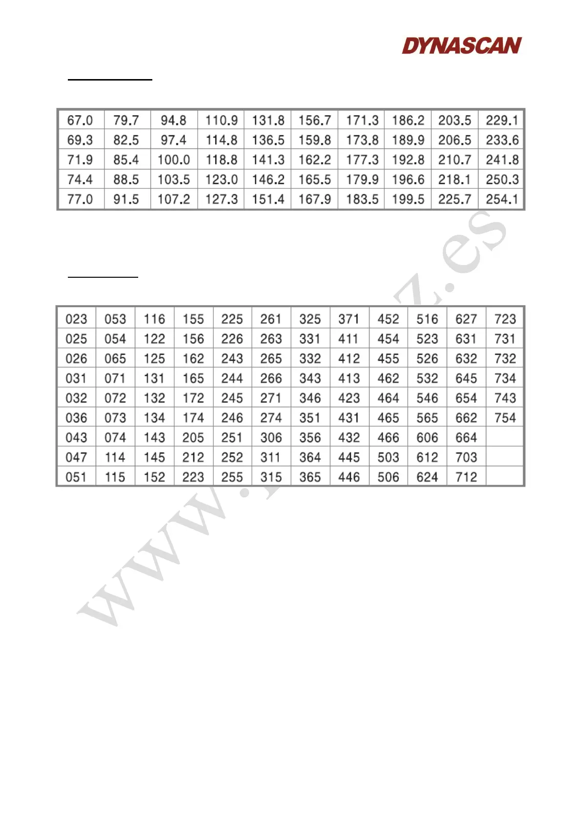 Dynascan V-440 - 8 Ctcss Table; 9 Dcs Table