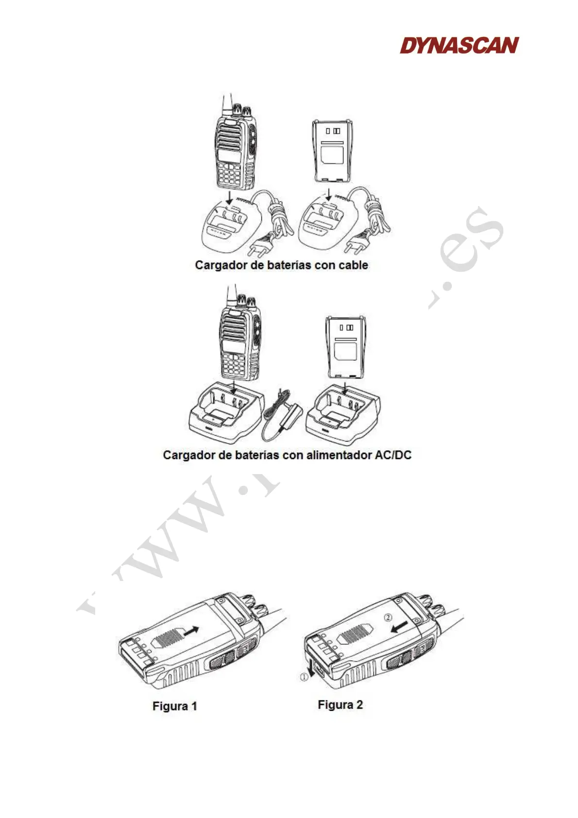 - Para instalar la batería, coloque la batería en la parte trasera del transceptor y deslice la batería