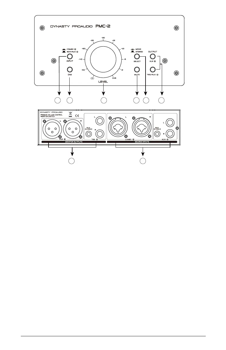 The on/off Mute Switch on the top panel allows engagement of the PMC-2 built in mute function, the PMC-2