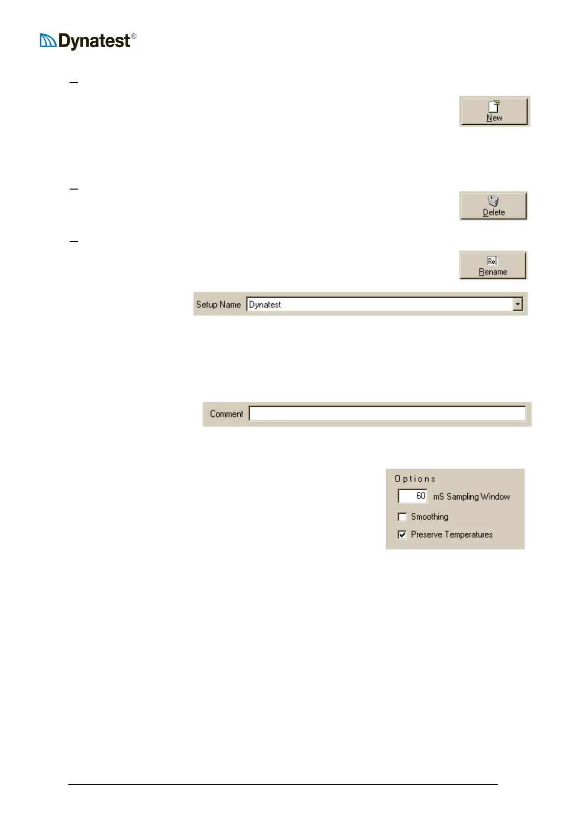 operator. If you click on this box, a list of all setups stored in the program will appear.