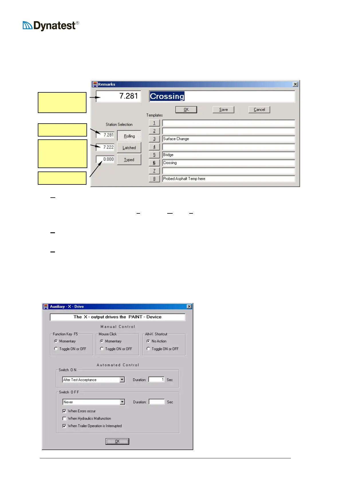 next test station. Pressing the “Remarks” button (or F4 or Alt+R) opens the following
