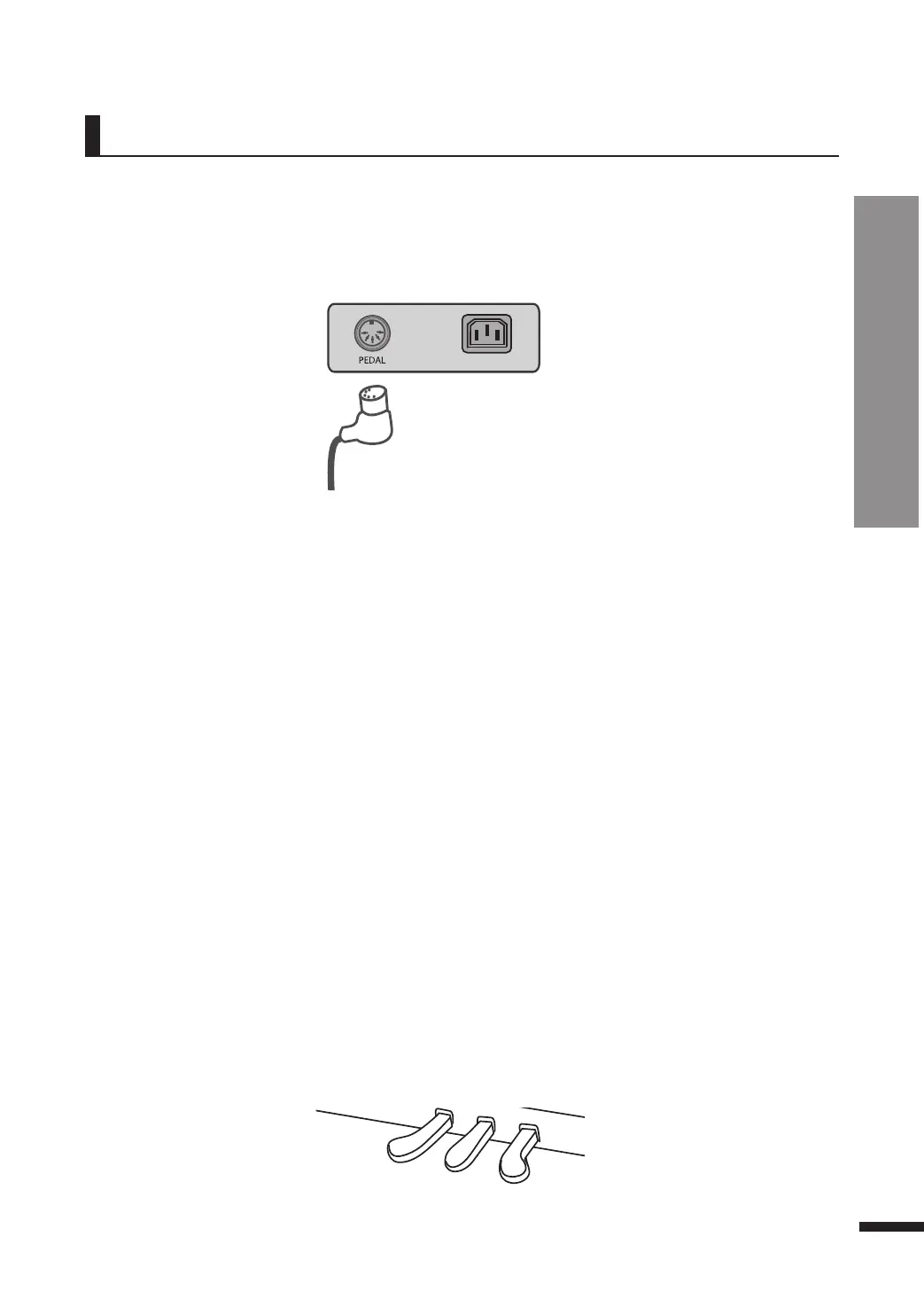 This pedal performs the same function as the soft pedal of an acoustic piano. Pressing this pedal