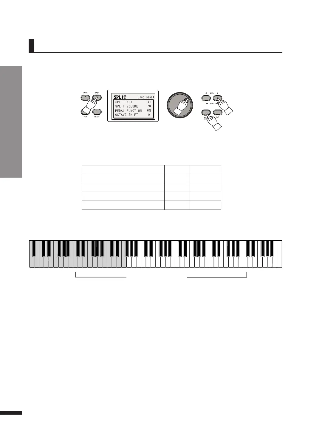 ☞ Pressing the VOICE buttons while in the Split menu selects the split voice.