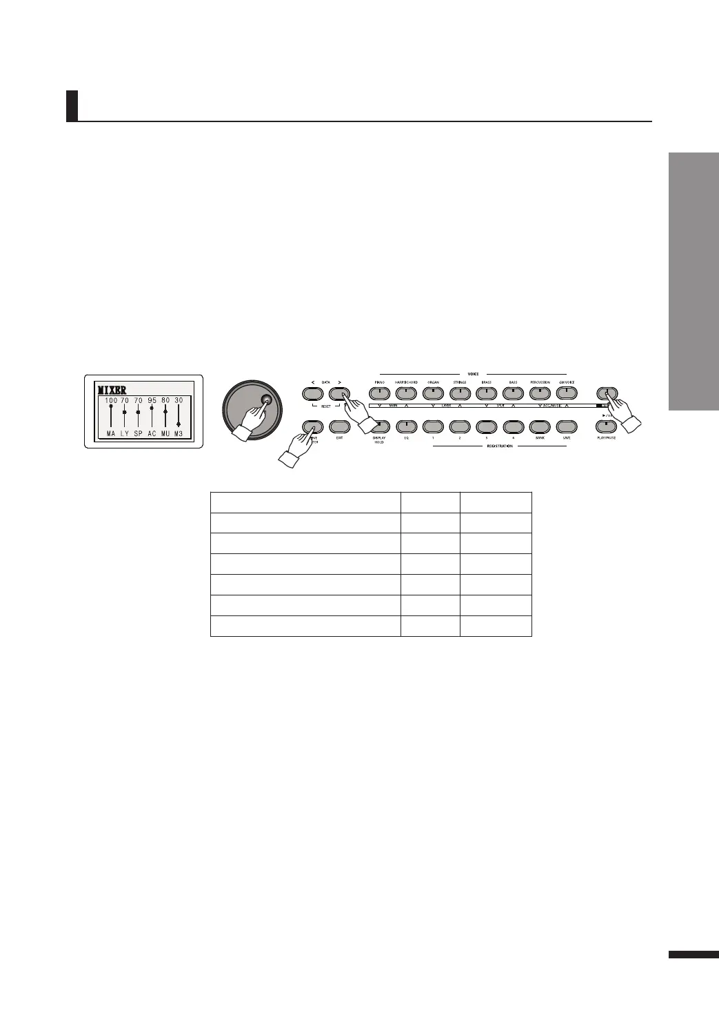 e Press MIXER again to leave the mixer and resume using the piano.