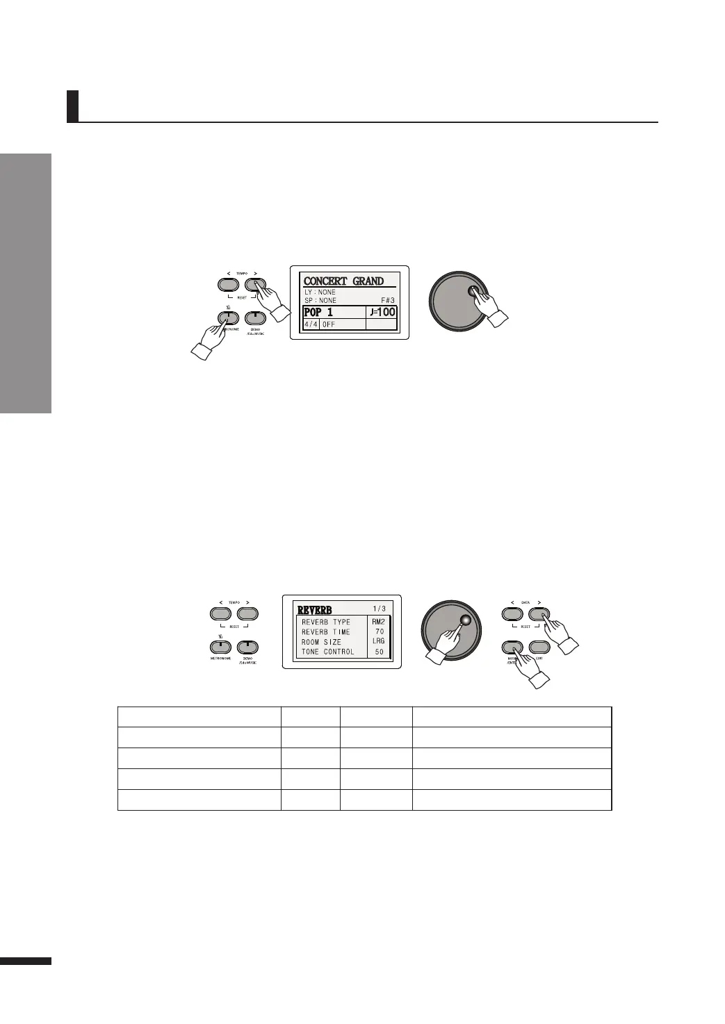 ☞ Pressing both TEMPO buttons simultaneously will restore the default tempo (120).