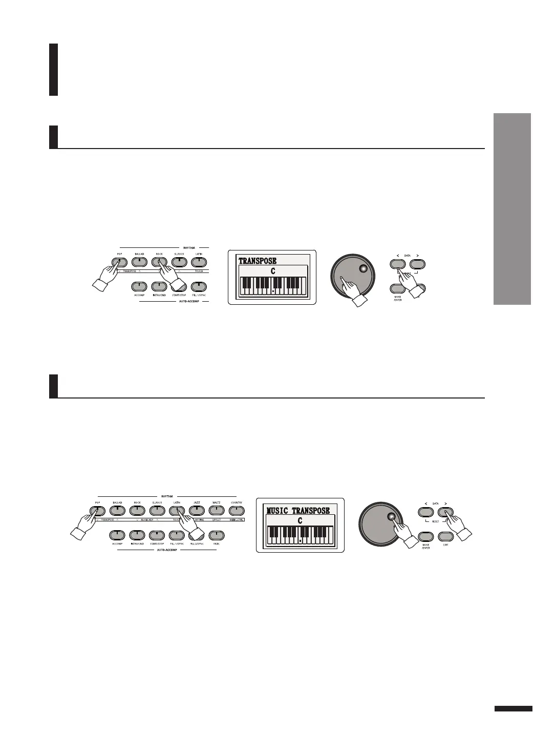 ☞ Pressing both TRANSPOSE UP/DOWN buttons simultaneously will restore the default value (0).