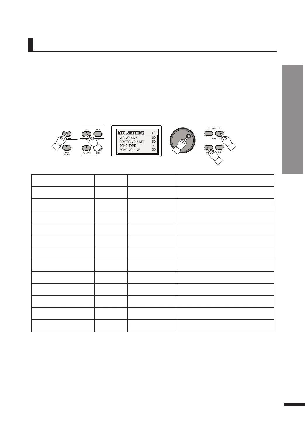 Press FUNCTION, then press MIC.SETTING to call up the mic.setting menu.