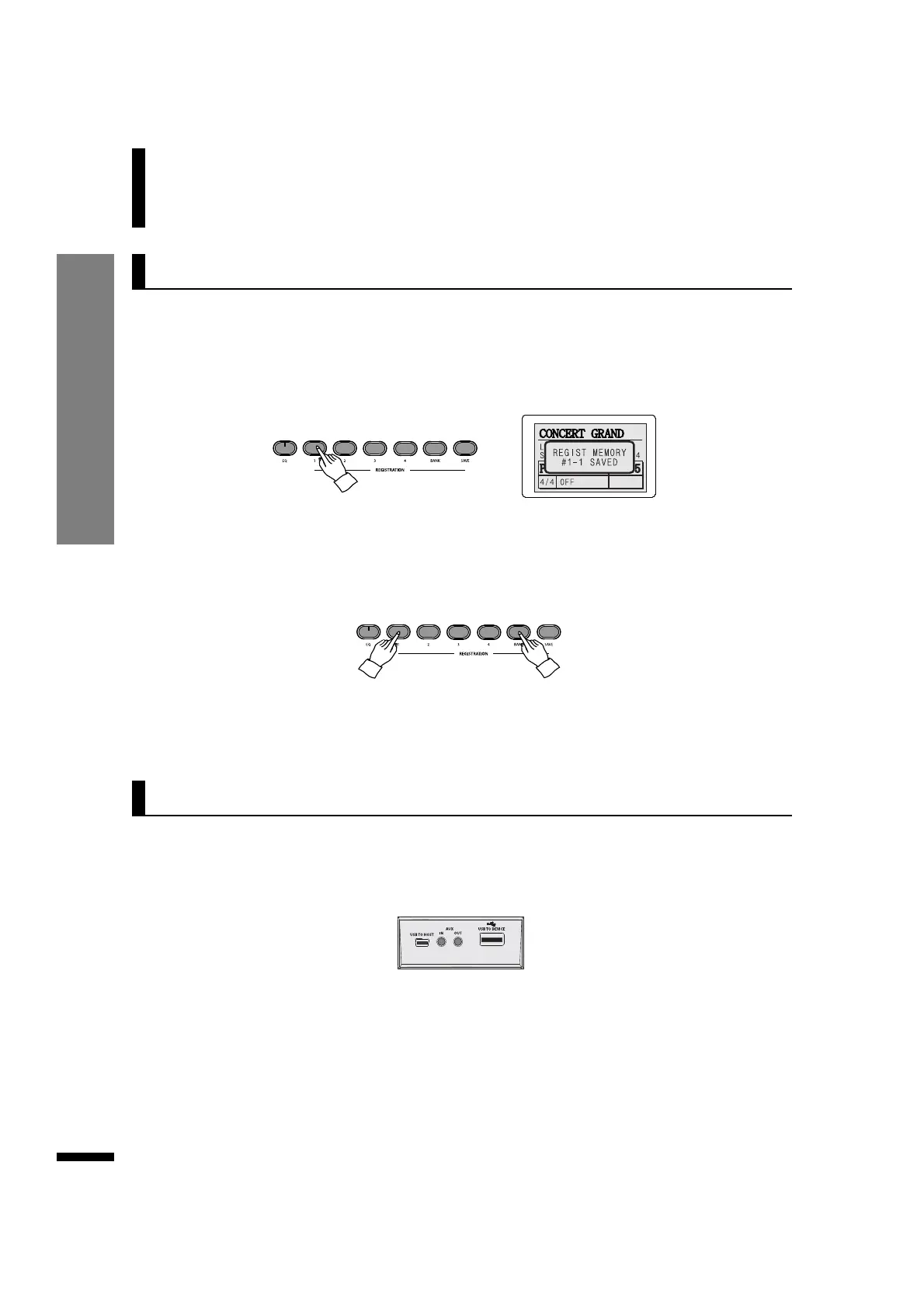 The registrations saved in the piano memory may also be saved to USB memories as files, which may
