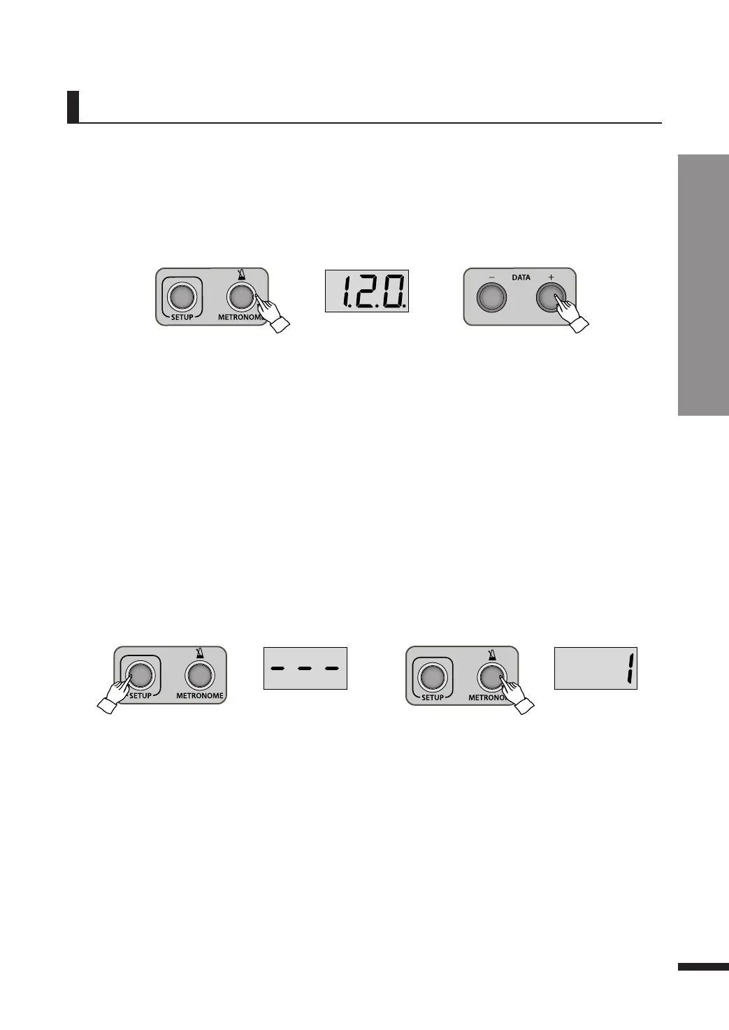 show the meter. Press DATA buttons to adjust the metronome meter.