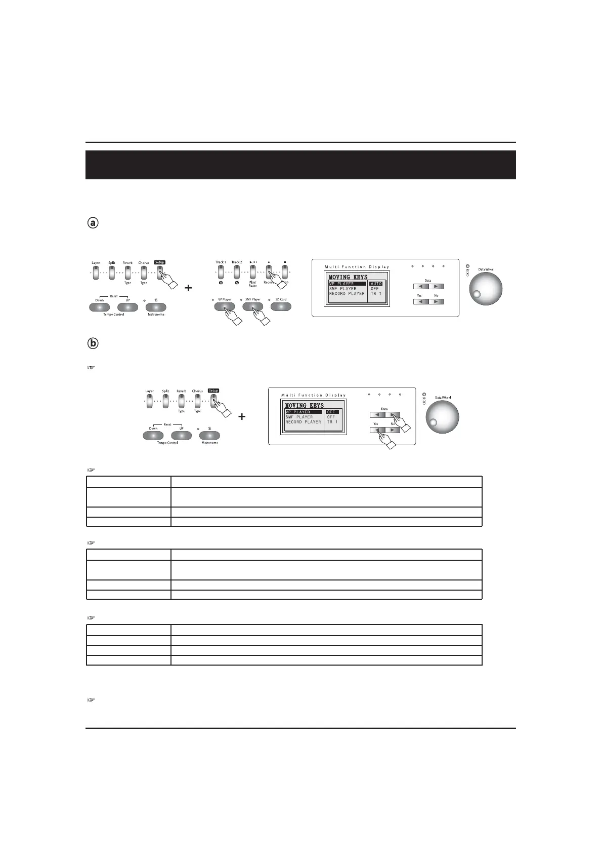 The moving keys function is operated with the VP Player, the SMF player or the Record function.