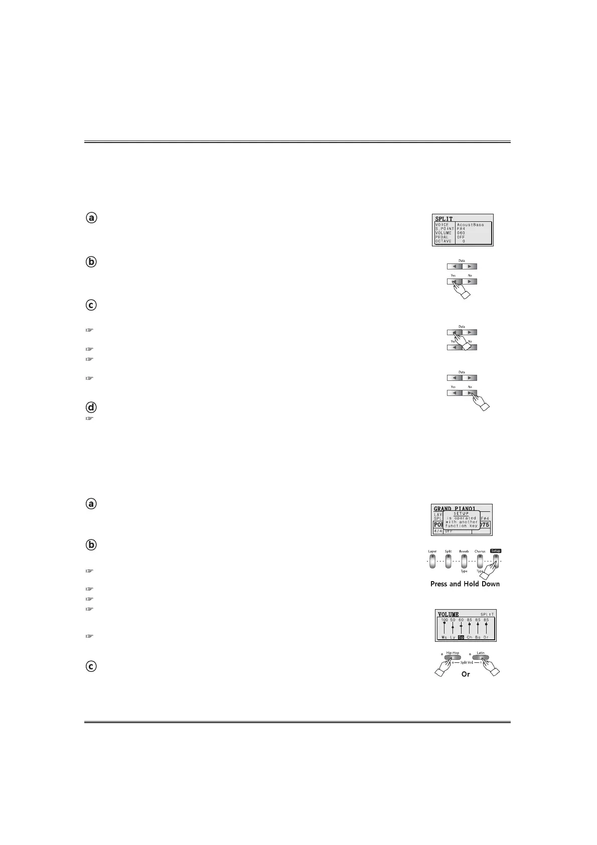 This determines the volume of the split voice. There two ways to adjust the split volume.