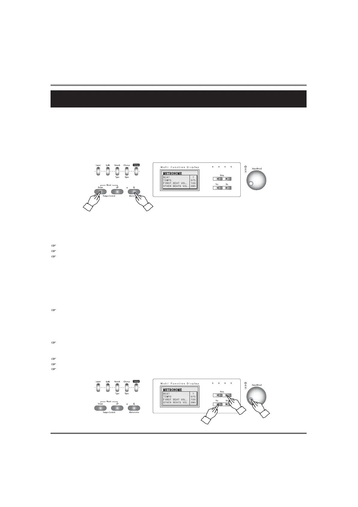 can change the selected metronome option by using the DATA buttons or the DATA wheel.