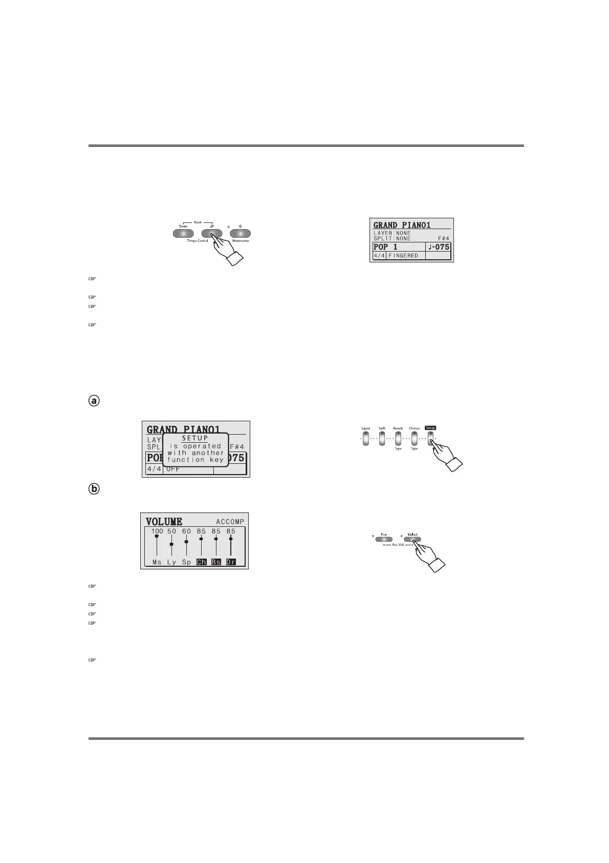 Tempo (Range: 40 ~ 250, Default setting: Differs depending on the style.)