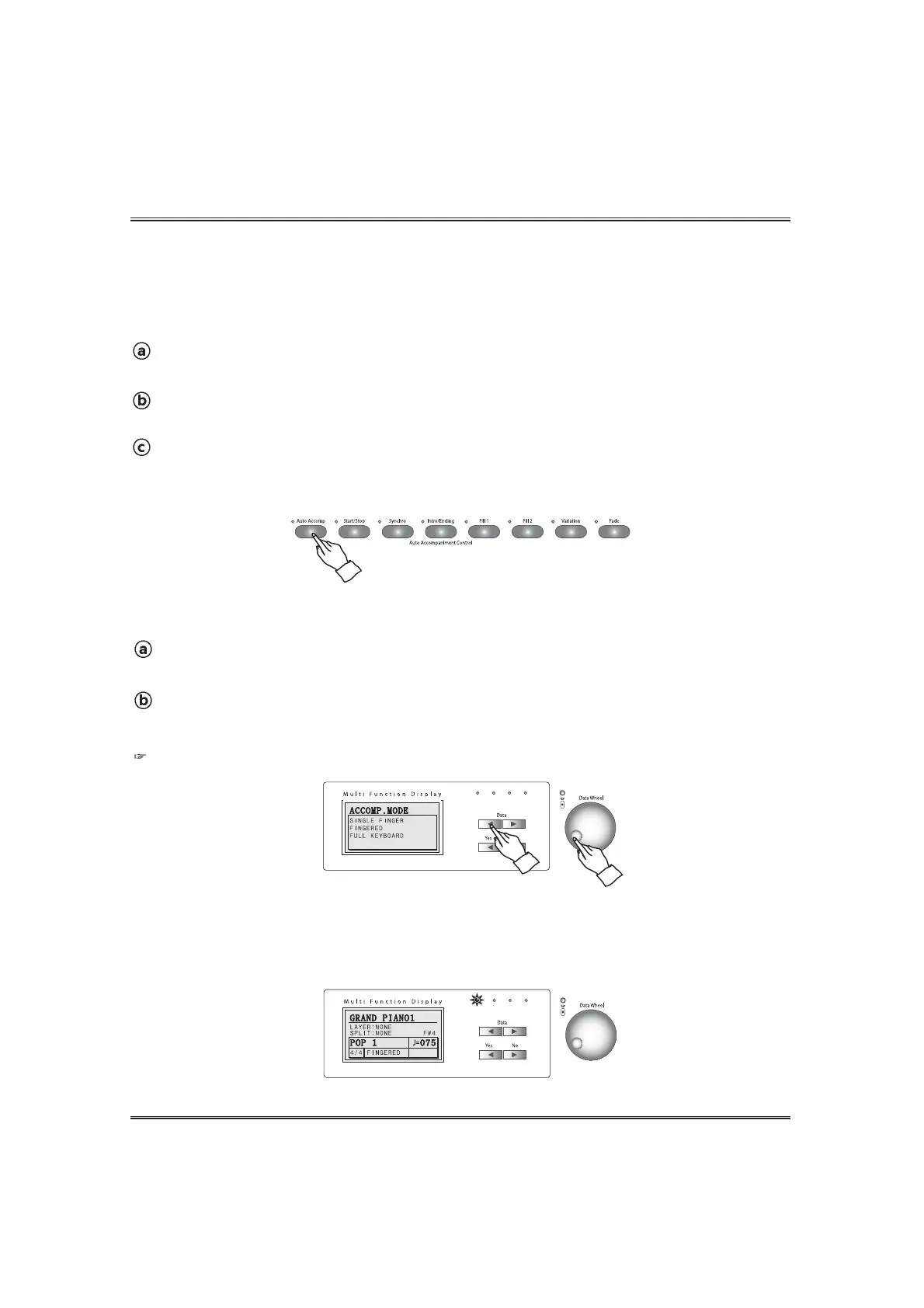 Select one of the auto accomp mode by using the DATA buttons or the DATA wheel in the accomp mode
