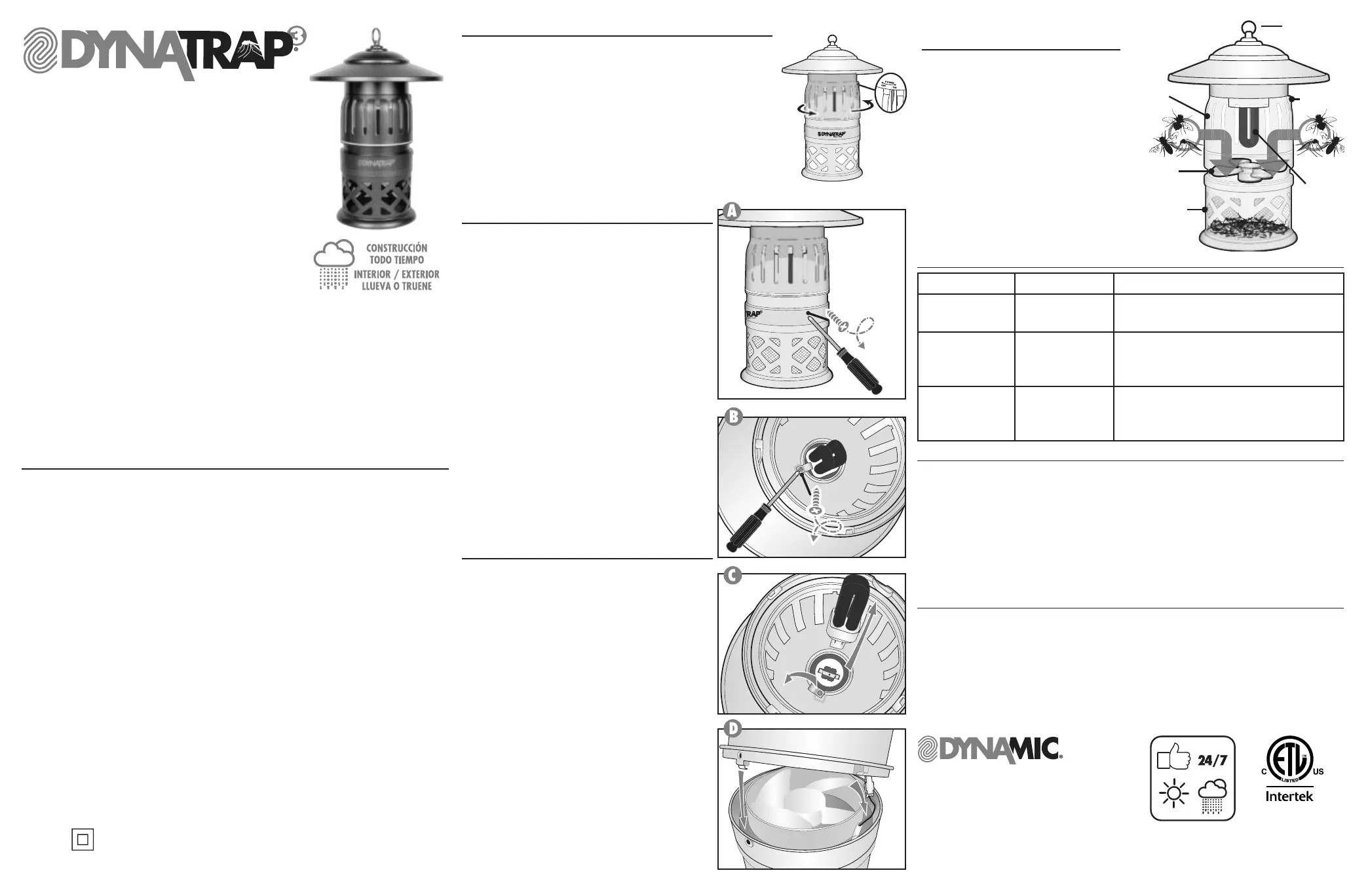 Por favor lea las instrucciones antes de usar la trampa para insectos DynaTrap