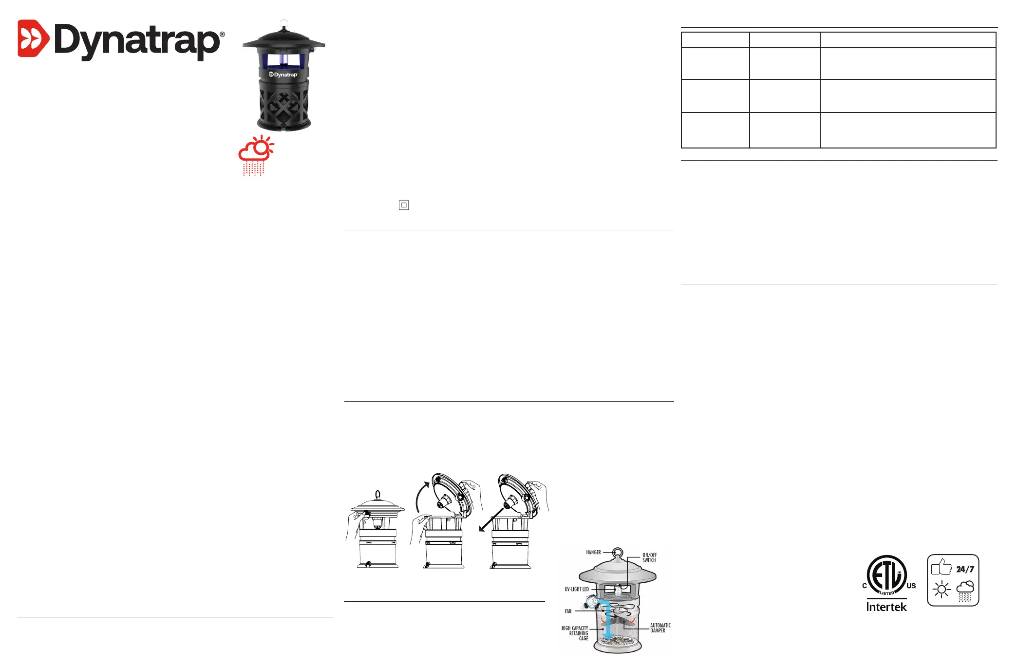 1. Lea todas las instrucciones antes de usar la trampa para insectos DynaTrap® y consérvelas para futuras consultas.