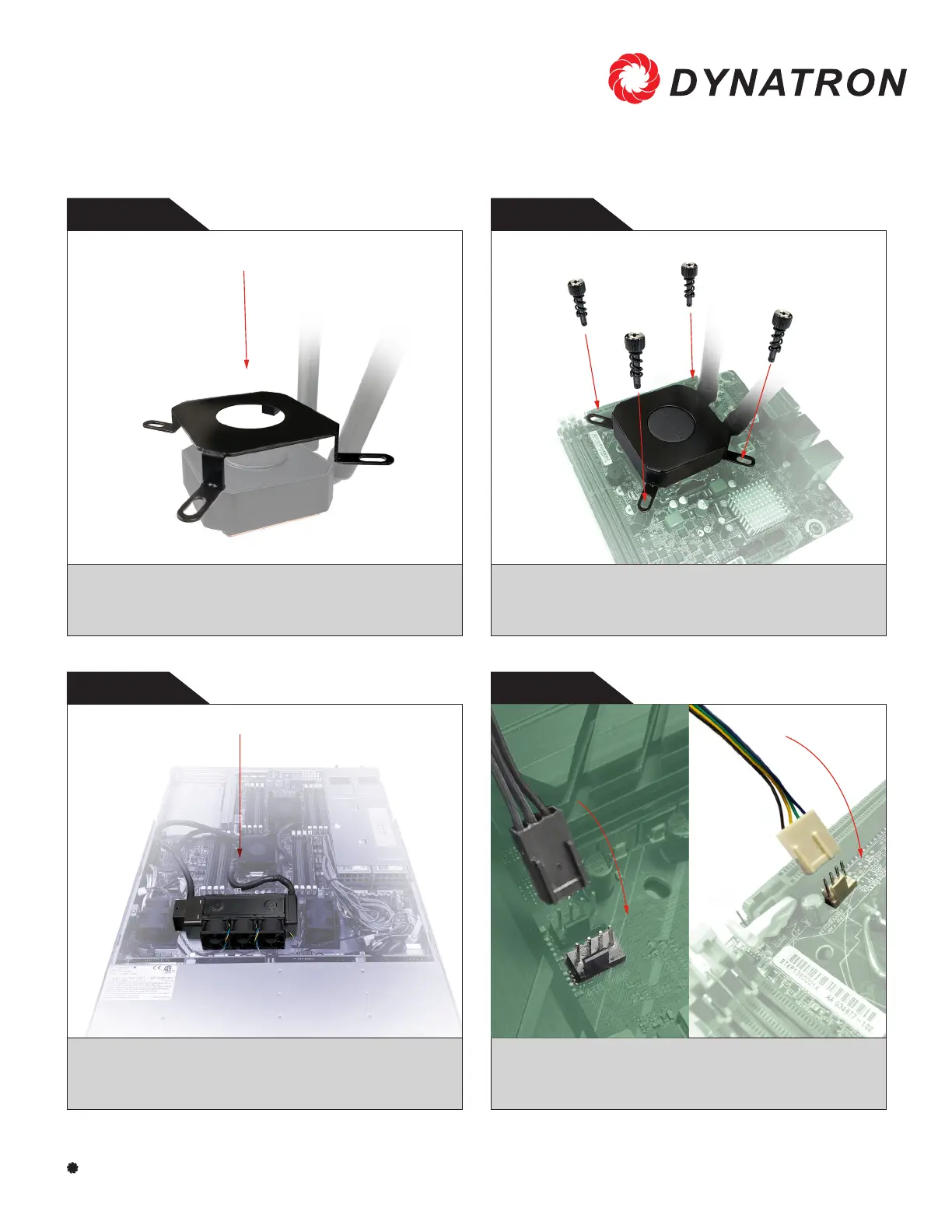 Dynatron L3 - Attach Retention Ring; Mount Cold Plate and Tighten Screws; Install Radiator and Fan Assembly; Connect Power Cables