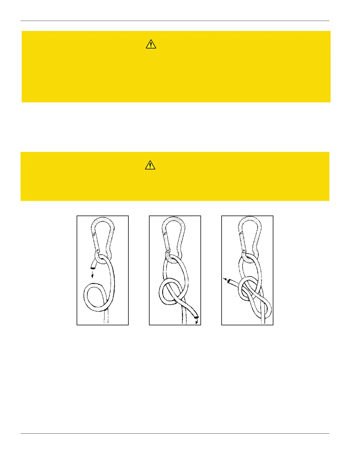 e cord must be attached to the carabiner hook by means of a knot capable of withstanding considerable traction,