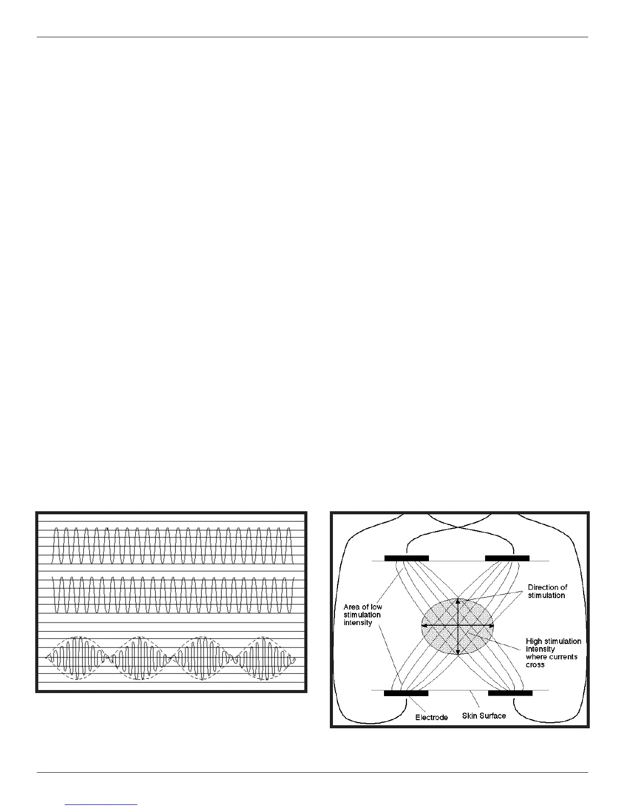 In the Interferential mode, two output jacks (Channels 1 and 2, or 3 and 4) are utilized with four electrodes placed in a