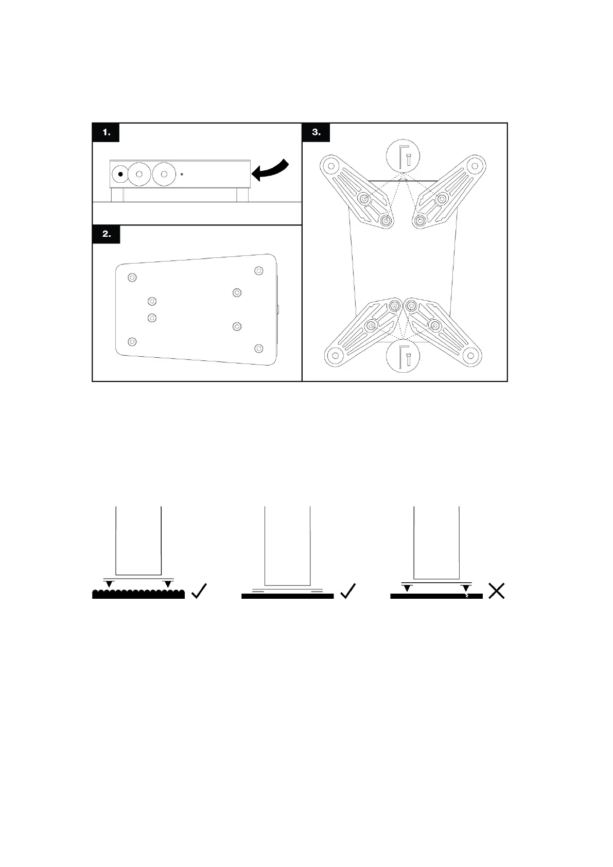 Each foot is secured using two of the supplied screws and washers using the supplied Allen key. Make sure to