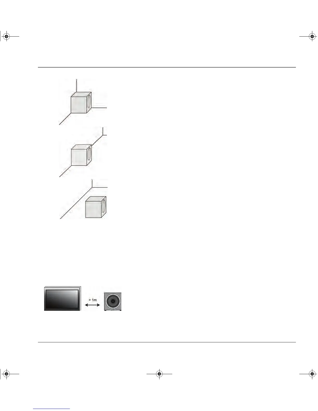 X Always position subwoofers at least 1 mtr/3 ft away from a television as the