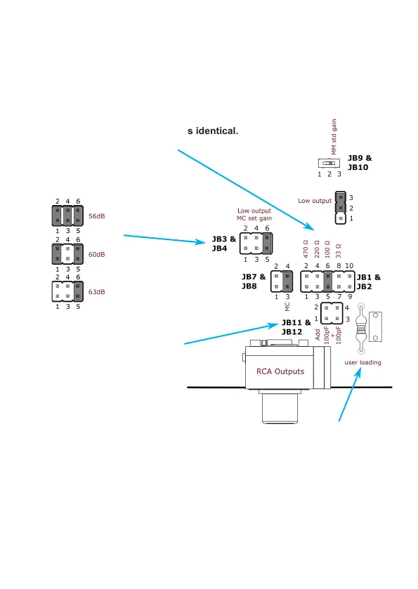 Set gain via JB3 and JB4.