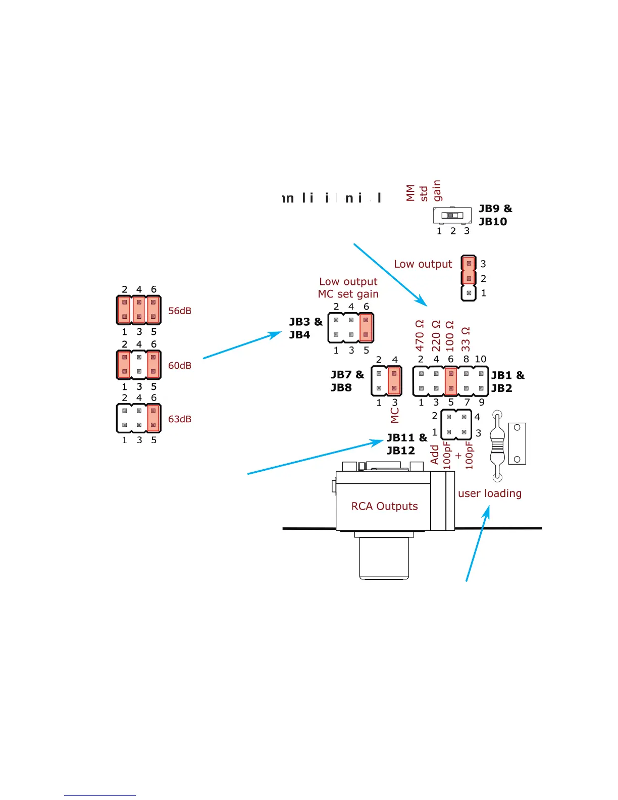 Set gain to 56dB by fitting all three jumpers to JB3 & JB4.