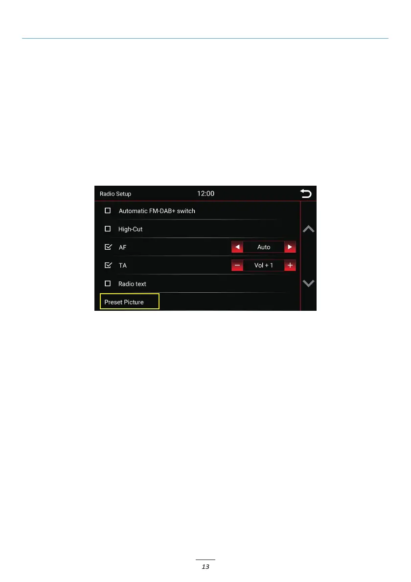 Click on "Setup" in the Radio menu and select the "Preset Picture" option. The data will be retrieved