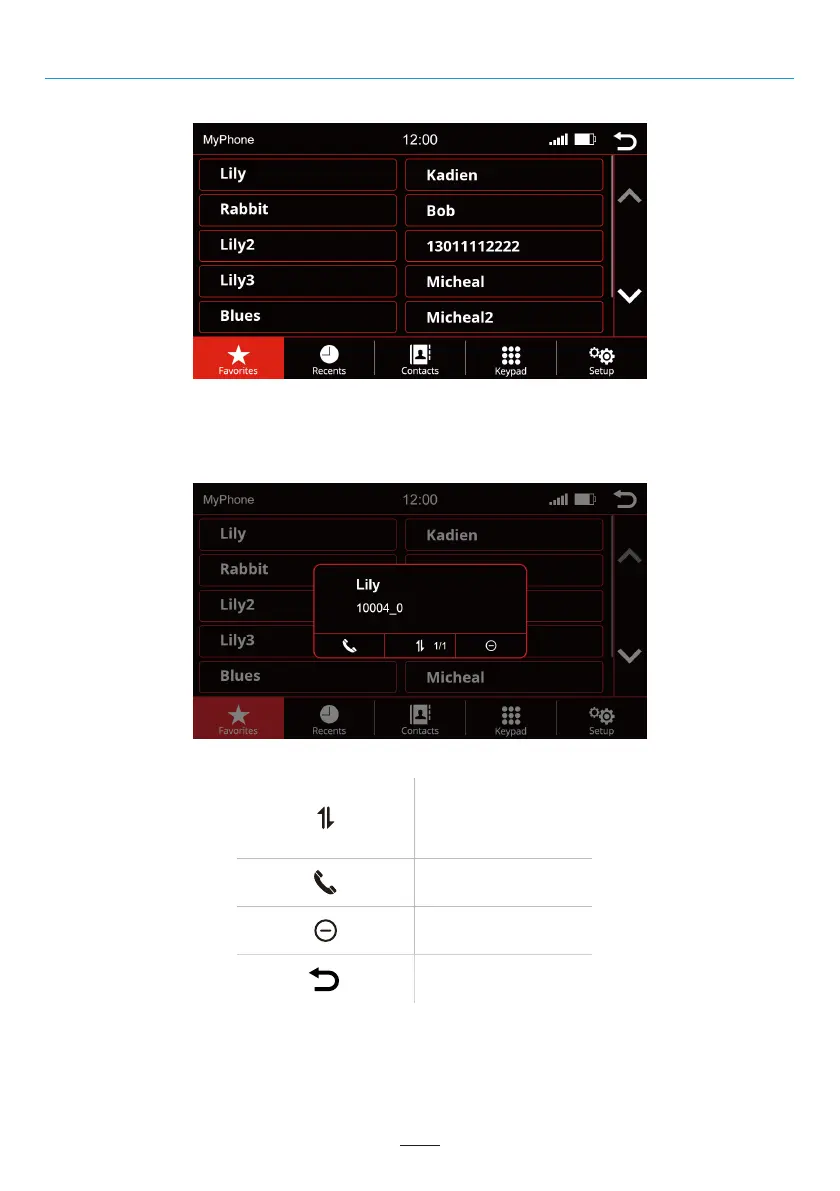 As soon as a contact has been saved as a favorite, it is transferred to the favorites list. To open the favorites list