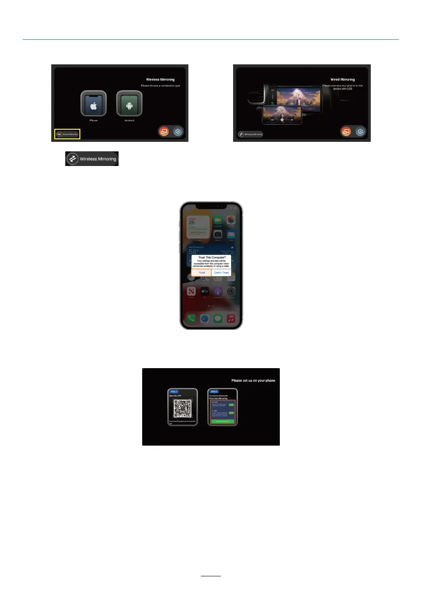 Click the “ ” button in the Wireless Mirroring menu to access the Wired Mirroring menu.