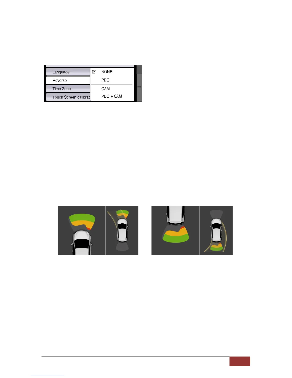 If you selected None and use than the reverse gear nothing happens, the screen remains in the