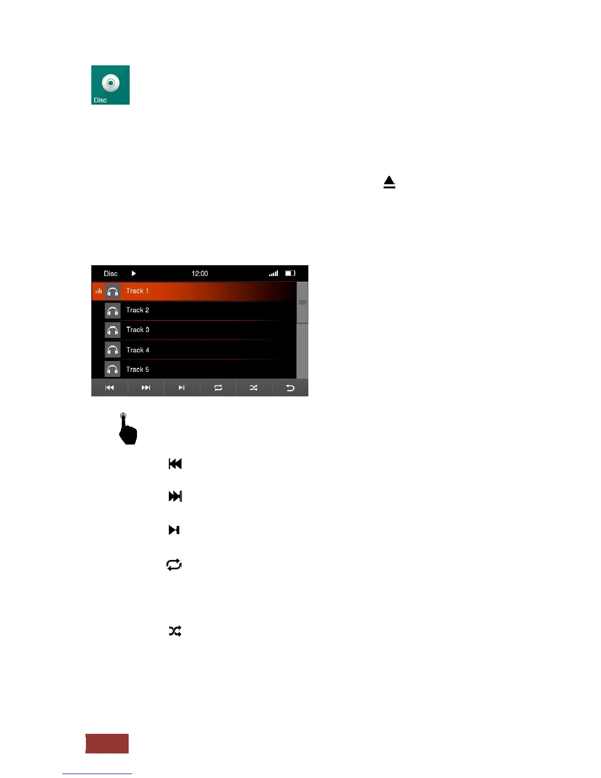 press the button labeled disc on the front of the device or from the main menu via the touch screen. By