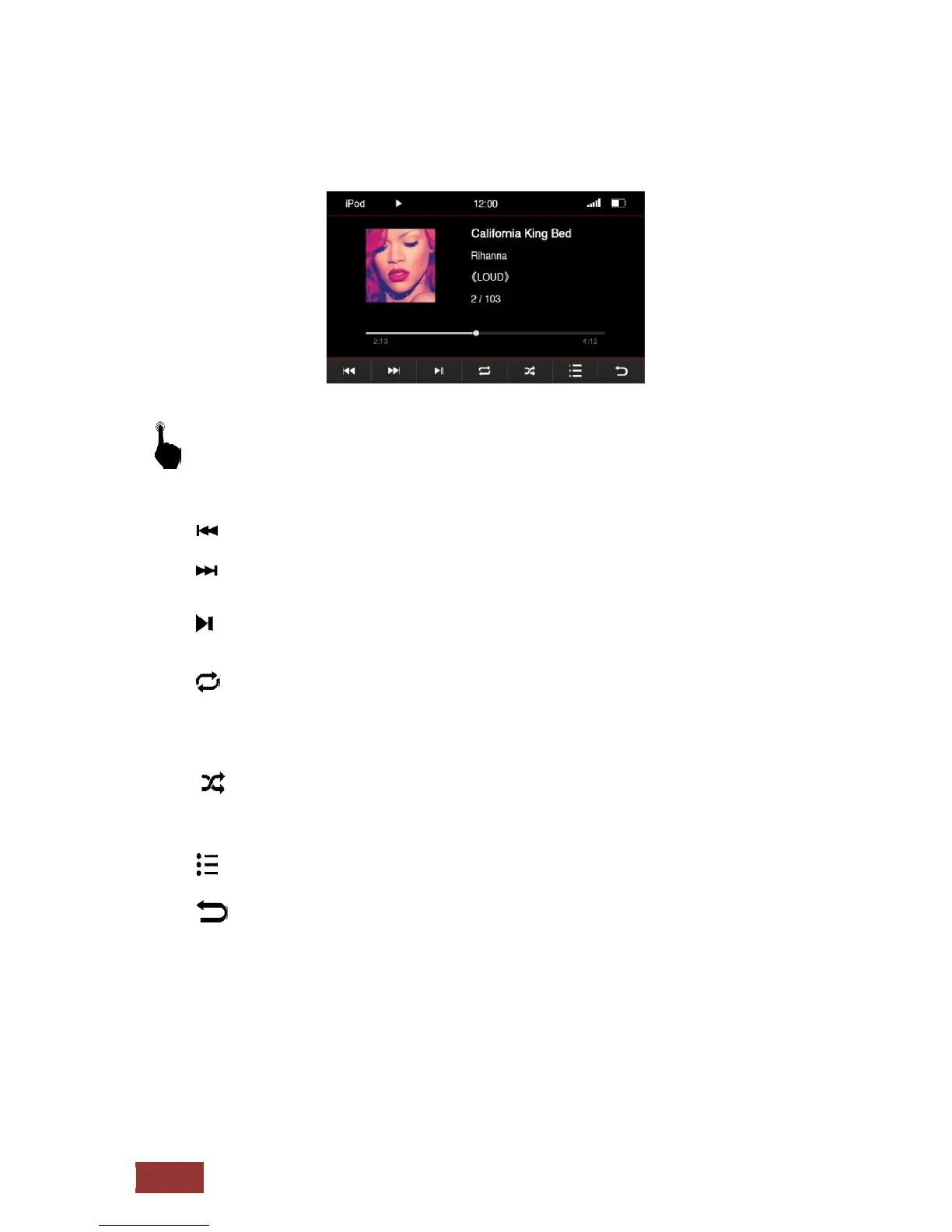 The symbol for Shuffle is in the upper line displayed as confirming the selection.