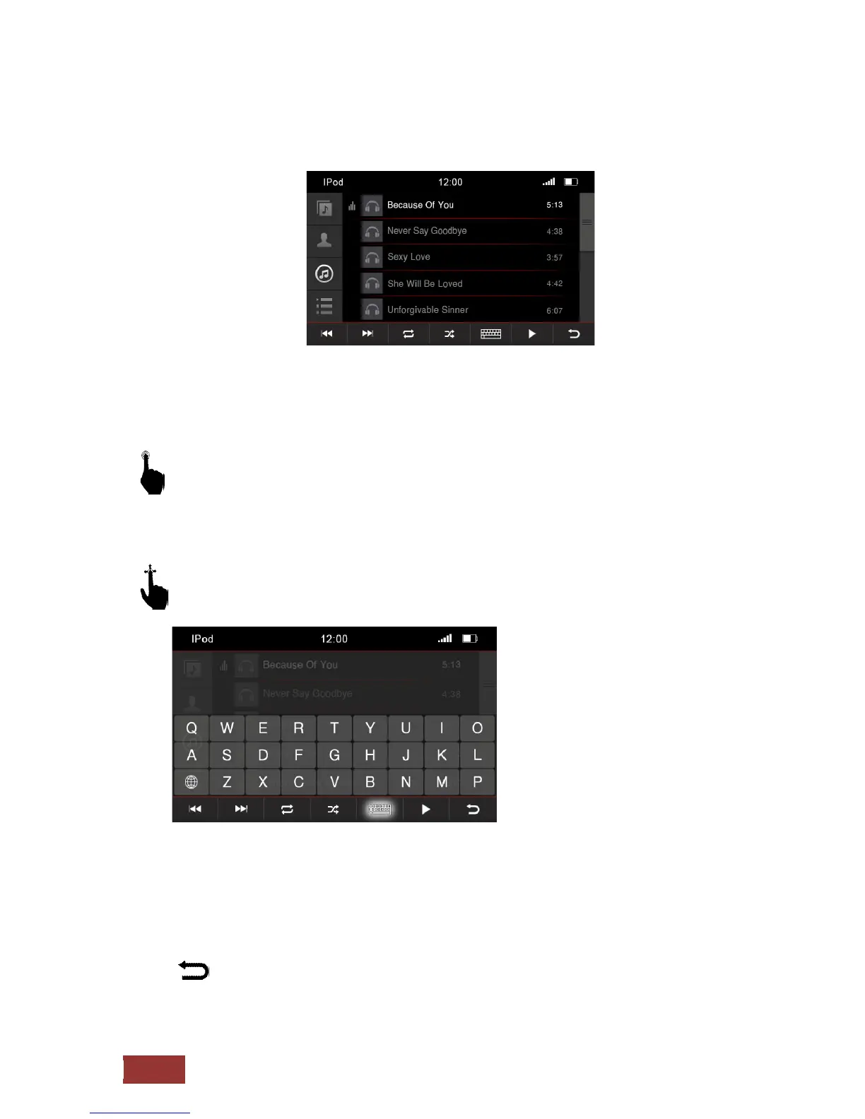 With an up and down motion, you can browse the songs in the table which is displayed to you