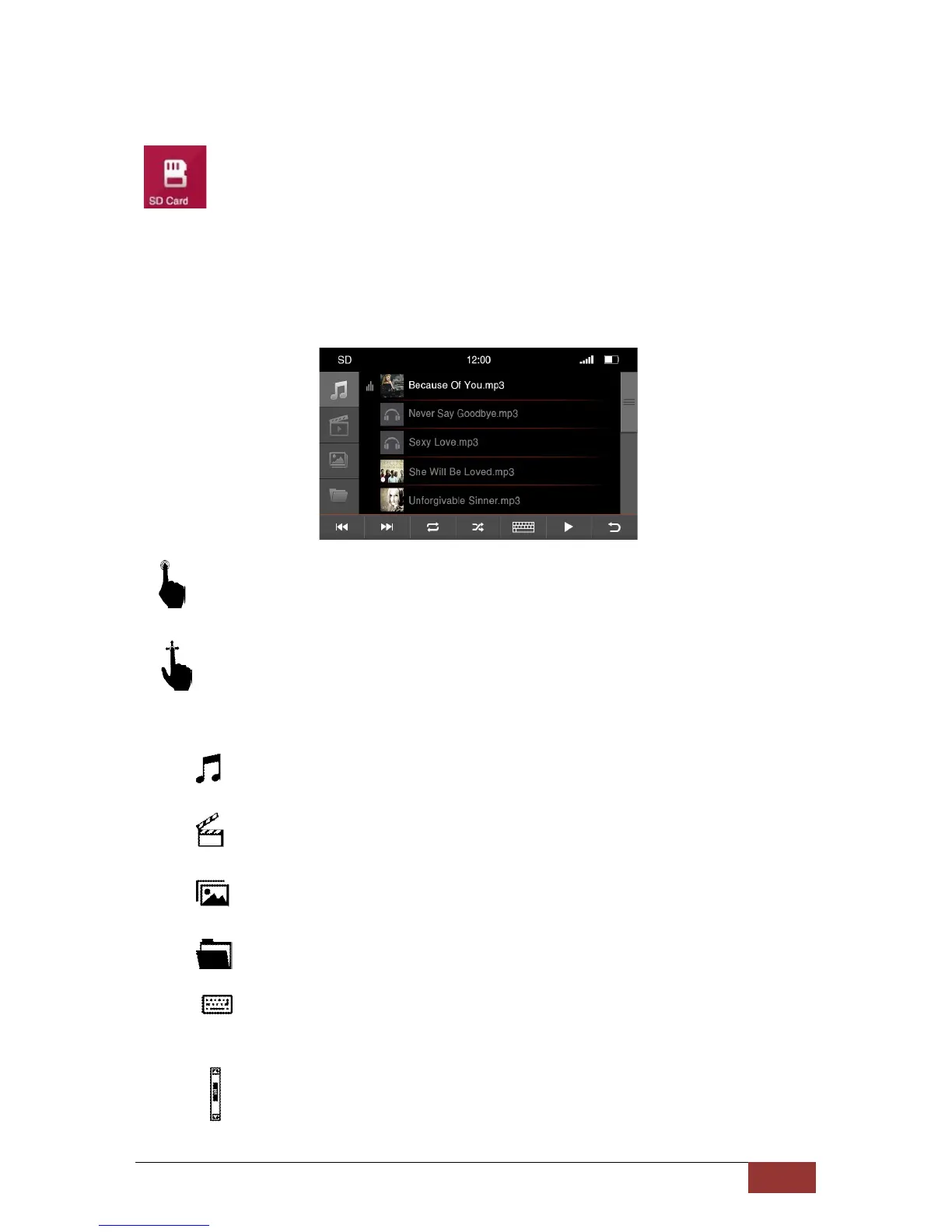 To access the SD card function, an SD card in the MMC slot on the front panel must be plugged.
