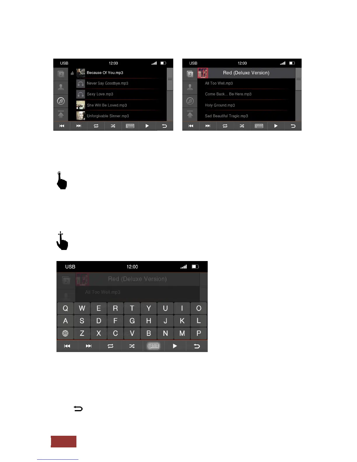 the keyboard icon, the virtual input option will be shown. Beginning with the first letter of a title you