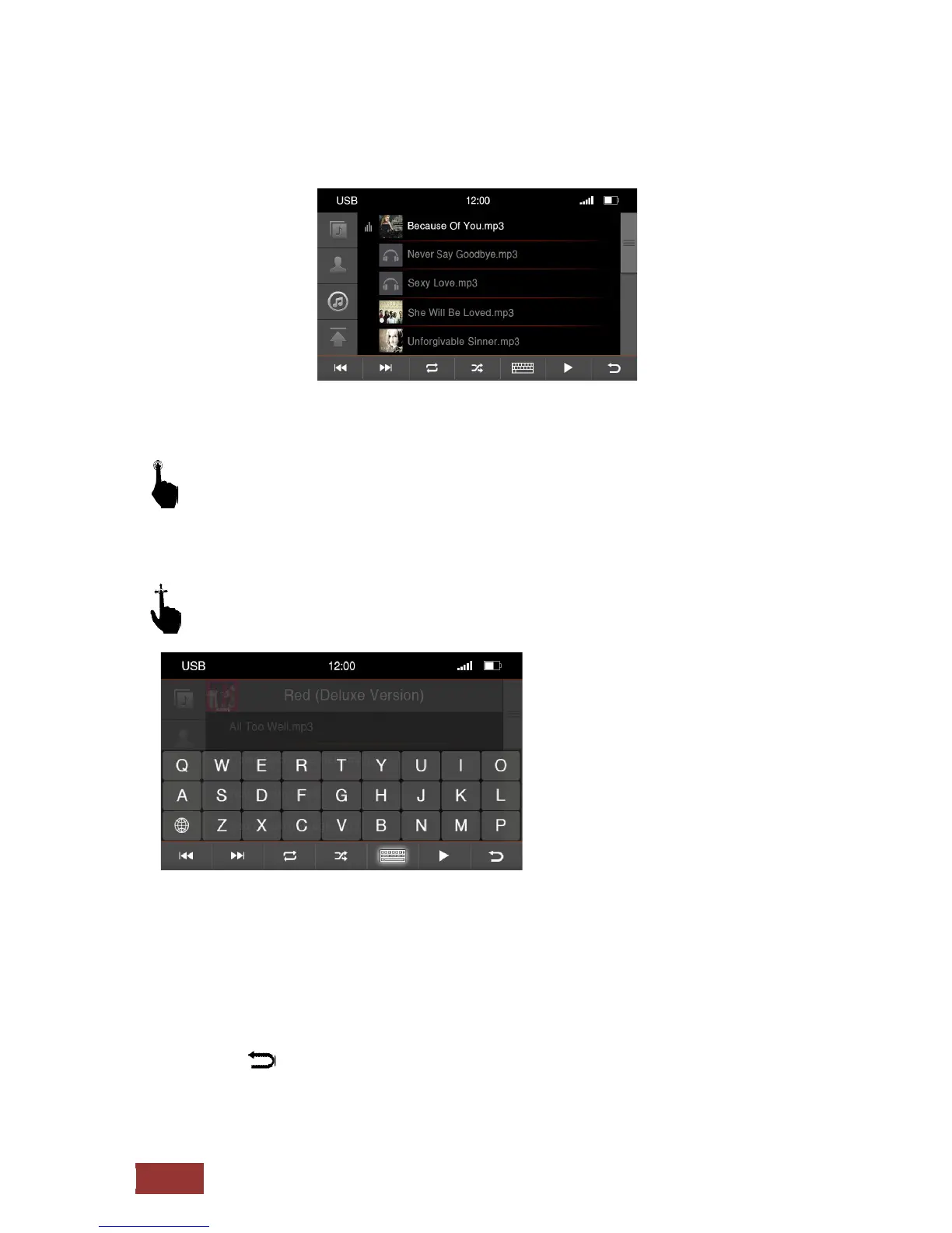 With an up and down motion, you can browse the songs in the table which is displayed to you