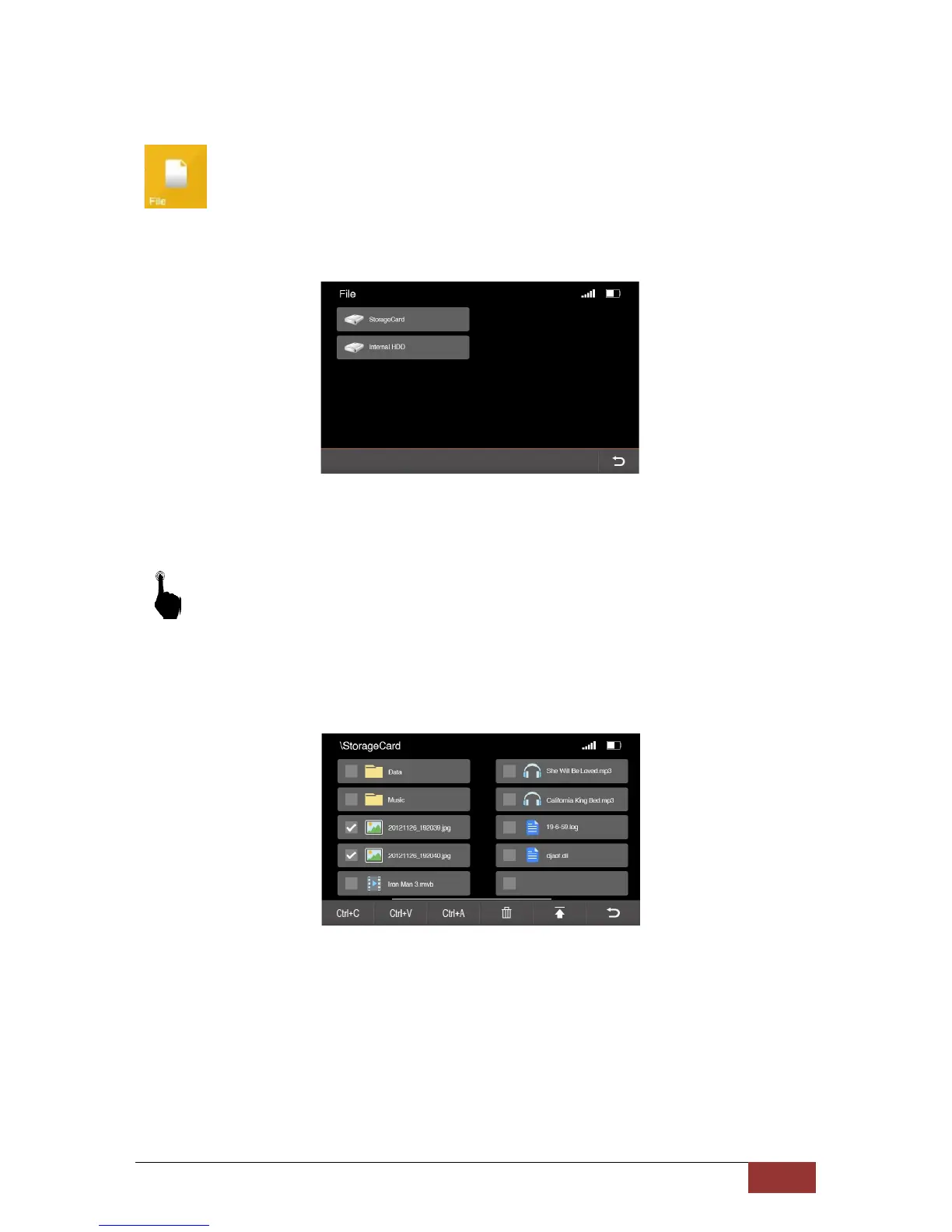 Like one a PC, you can now select files and by the shown keyboard shortcuts you can copy, past, or