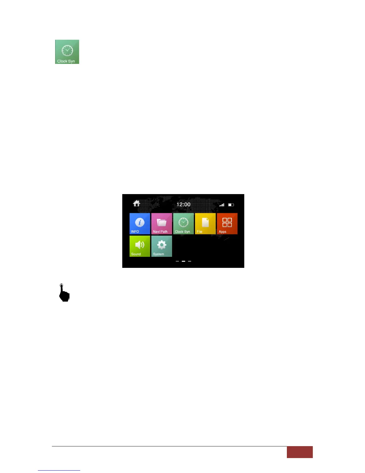 To press through a short touch on the display the Clock Sync option in the main menu will be