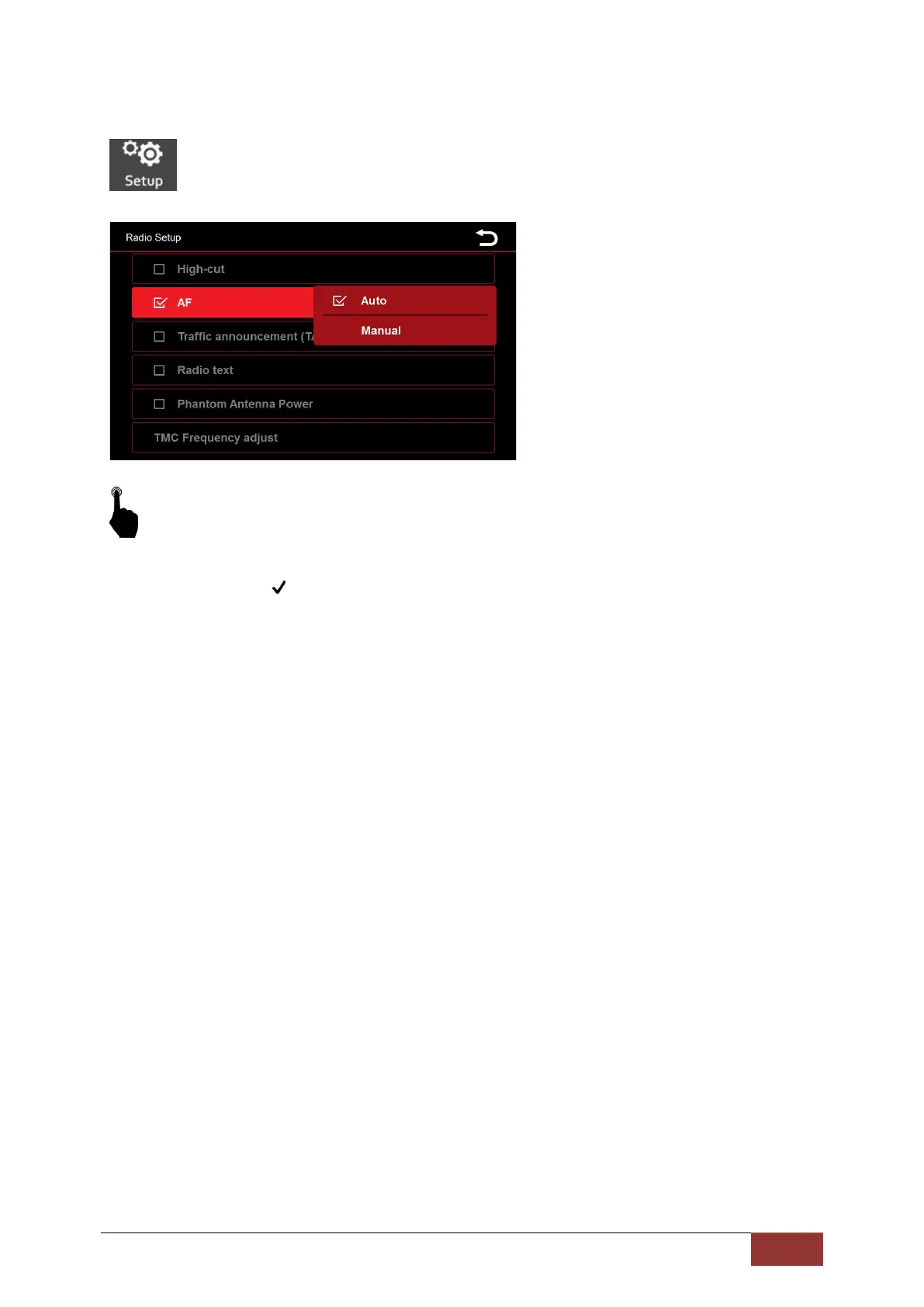 When selected, AF will display on the top of the radio menu. This allows a receiver to