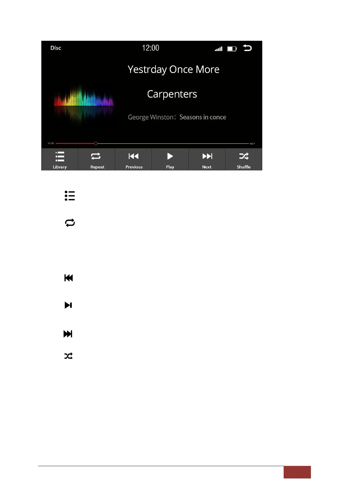 Shuffle: In this setting, the songs are played at random from the selected album or