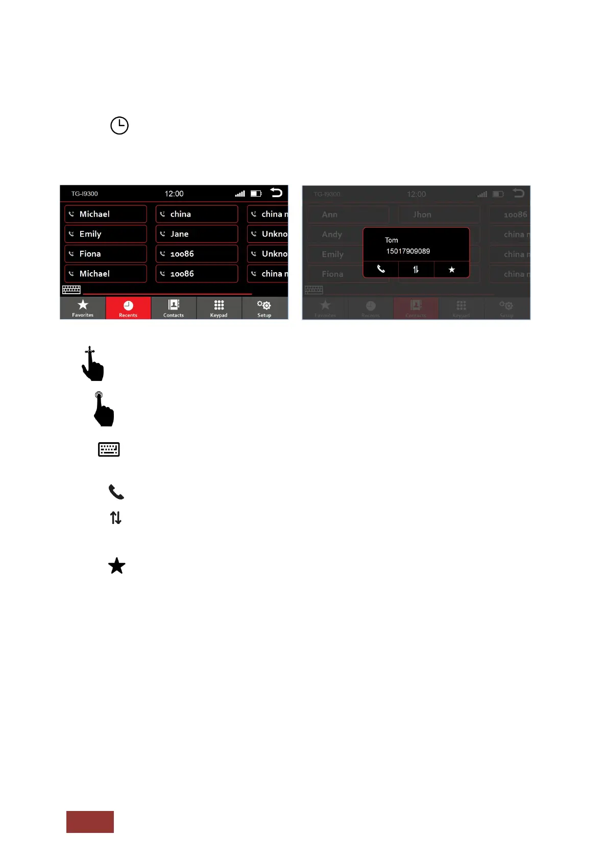 Swipe to scroll left or right. All recent contacts will be displayed.