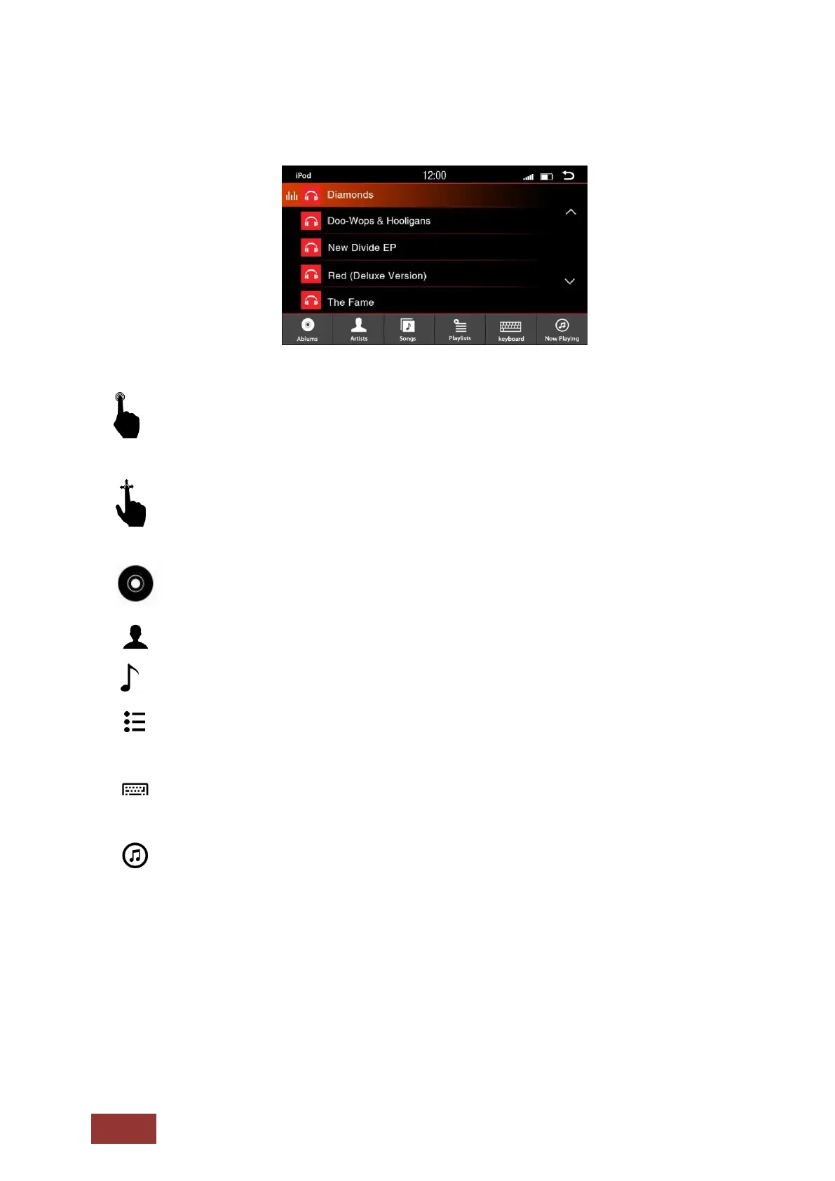 With an up and down scrolling motion, you can search the songs, artists, or playlists in the